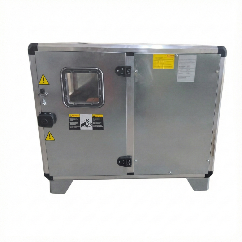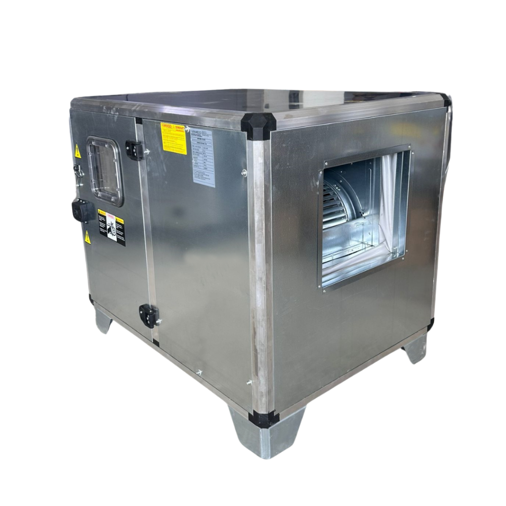 Sıradan fanların aksine, özel olarak tasarlanmış çift cidarlı paneller ve ses yalıtım malzemeleri sayesinde çevreyi rahatsız etmeden kirli havayı tahliye eder veya taze hava basar.
